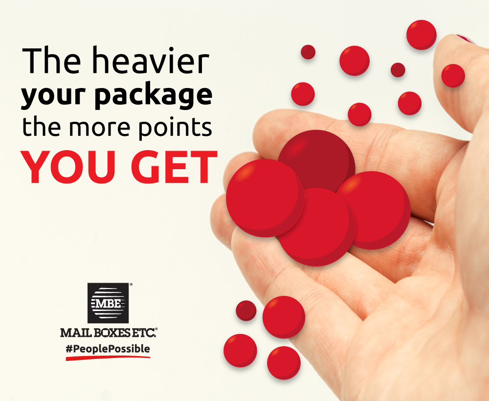 MBE points may be redeemed for any of our services at any of our Mail Boxes Etc. centers, you will only need to register on our website, and you will automatically be enrolled in the loyalty program “MBE Points”.
